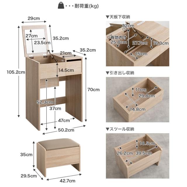 ■ ドレッサー本体サイズ: 幅 50.2cm × 奥行 35.2cm × 高さ 70cm