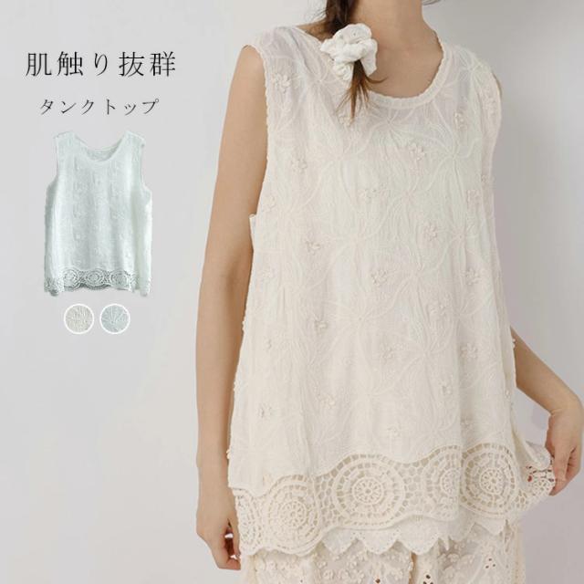 レイヤード タンクトップ レディース 綿 裾レース 重ね着タンクトップ 刺繍 重ね着 切り替え ロング インナー 立体的な花柄 レディースタンクトップ レディースインナー レイヤードインナー トップス