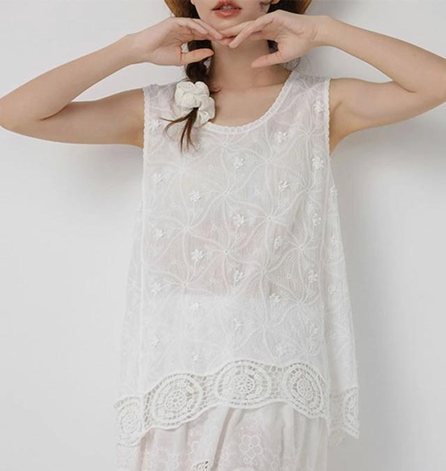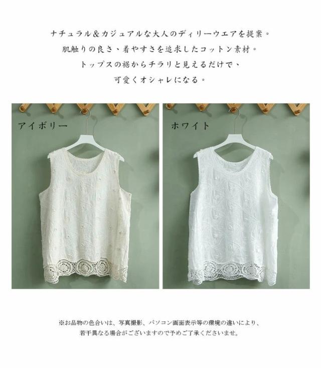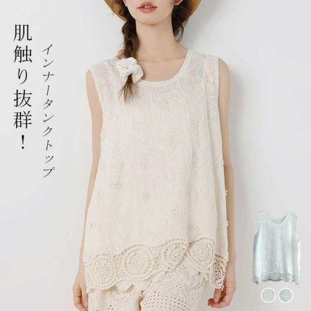 レイヤード タンクトップ レディース 綿 裾レース 重ね着タンクトップ 刺繍 重ね着 切り替え ロング インナー 立体的な花柄 レディースタンクトップ レディースインナー レイヤードインナー トップス
