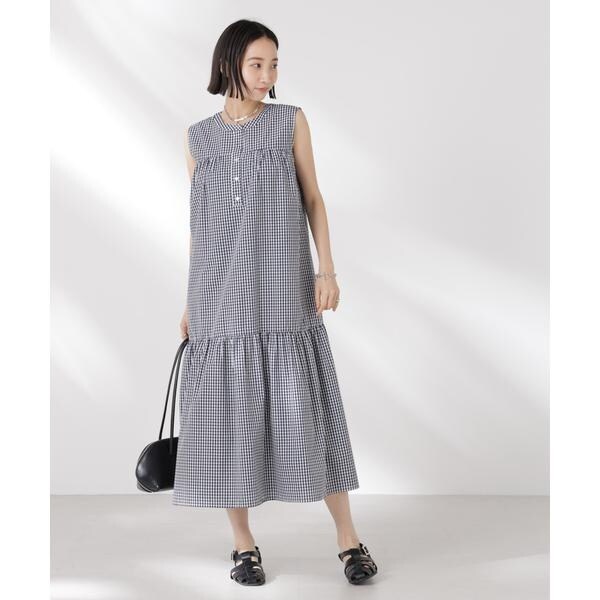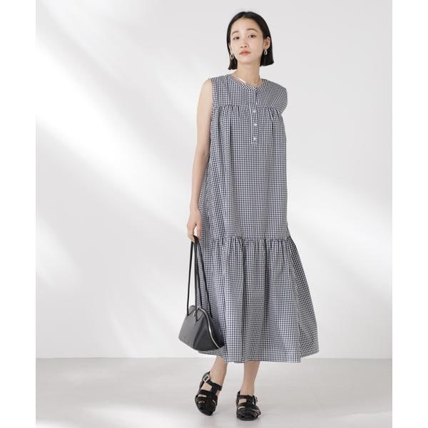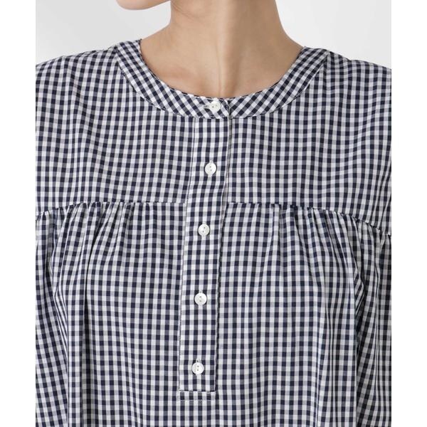 ON/OFFで様になるヘンリーネックデザインのボリュームワンピース。フロントにギャザー、後ろにタックデザインを施した、横のボリュームを抑えた上品なシルエットが魅力的。時短でパッとコーディネートが完成するから、クローゼットに備えておくと重宝しそう。