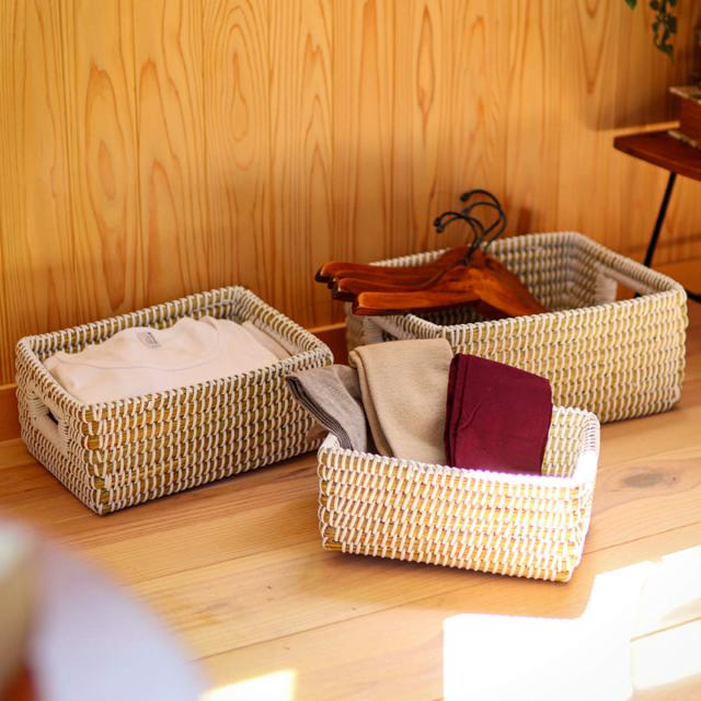 かご レクタングルバスケット S M L 3個組 ( バスケット カゴ 収納 小物収納 シーグラス ハンドメイド 籠 小物ケース 収納バスケット トレー 収納ボックス 水草 ナチュラル 手編み 手作り )