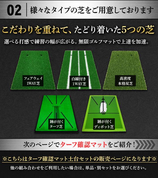 【使いやすい5種類の芝】練習しやすい芝のセットを5種類ご用意しました。用途やお好みに合わせてお選びください。また張り替え用の芝のみの単品販売も行っておりますので、カスタマイズ用や交換用としてご利用ください。