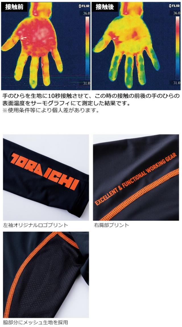 1点までネコポス可 寅壱 クールコンプレッション 長袖クルーネックTシャツ 7996-617 メンズ レディース ストレッチ 接触冷感 吸汗速乾 UVカット 作業服 作業着