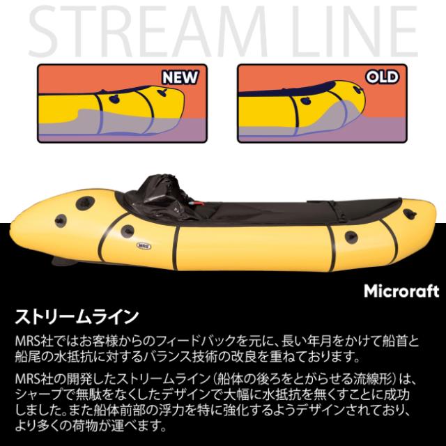 マイクロラフトはMRS社のクラシックモデル。お客様からのフィードバックを元に、長い年月をかけて船首と船尾の水抵抗に対するバランス技術の改良を重ねてきたモデルとなります。