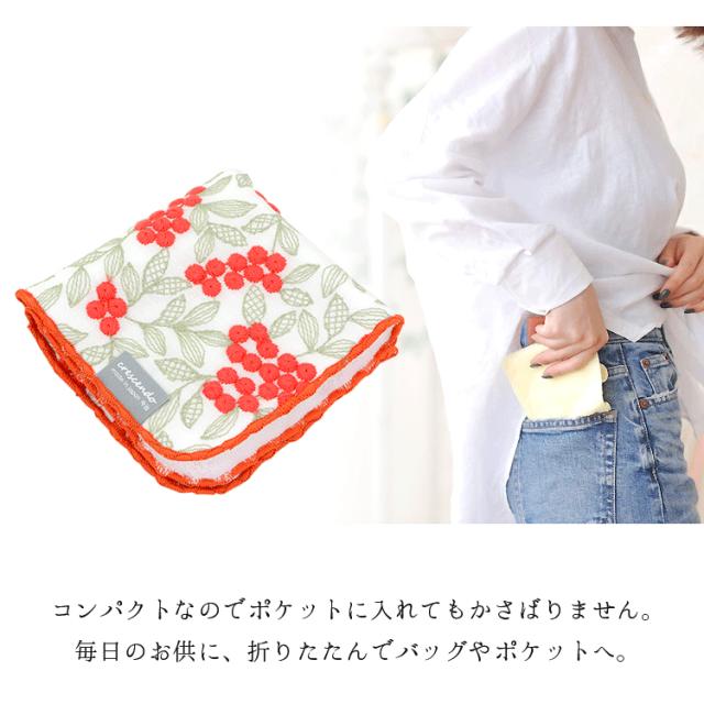 21cmサイズなのでポケットに入れてもかさばらない、コンパクトなハンカチ。