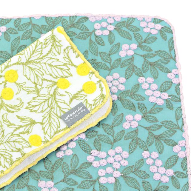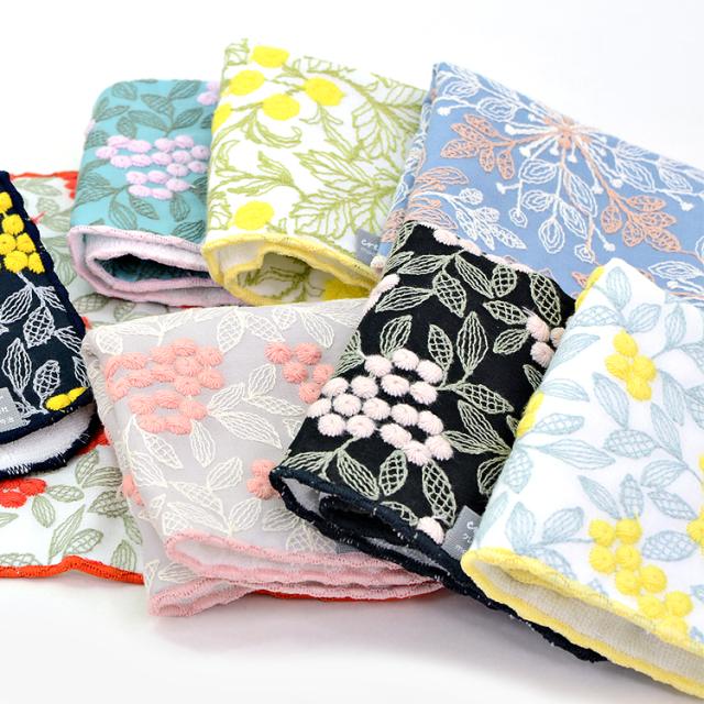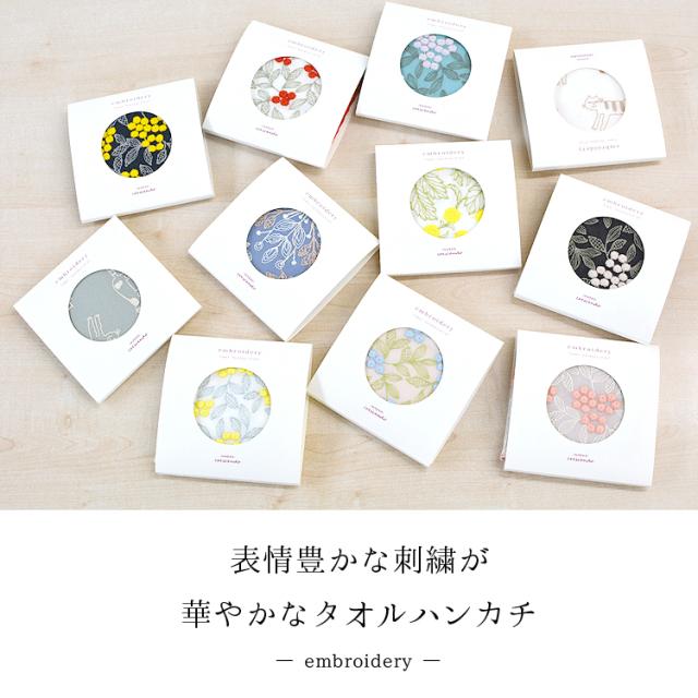 【表情豊かな刺繍が華やかなタオルハンカチ 2枚セット】