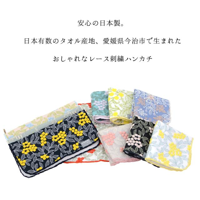 今治産 レディース ハンドタオル 刺繍 レース 2枚セット 21×21cm パッケージ付き タオルハンカチ とっても可愛い刺繍 花柄 フラワー刺繍 綿100% ハンカチ タオル 日本製 今治 タオル コットン 吸水 速乾 ふわふわ 贈り物 プレゼント 誕生日 母の日 メール便【送料200】