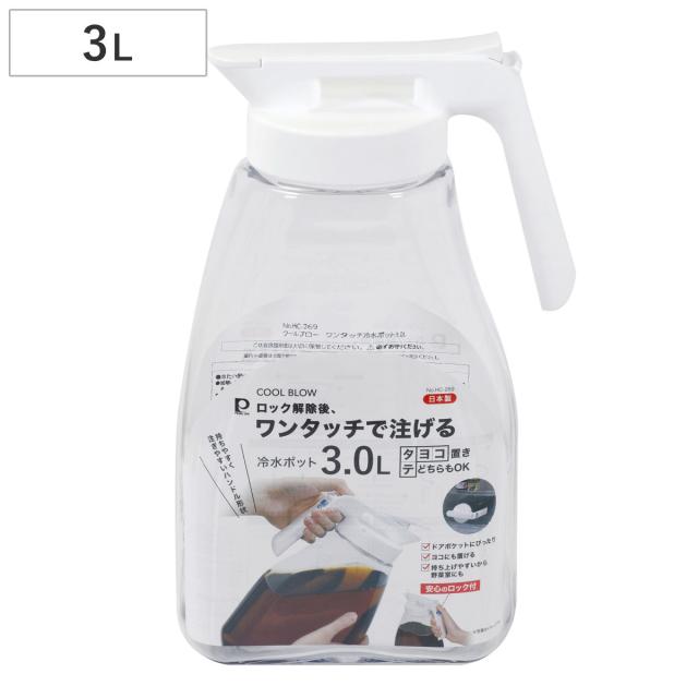 冷水筒 3L クールブロー ワンタッチ冷水ポット ( ピッチャー 冷水ポット ワンタッチ 日本製 麦茶ポット 横置き 大容量 水差し 麦茶 水 広口 取っ手付き ワンプッシュ 片手 )