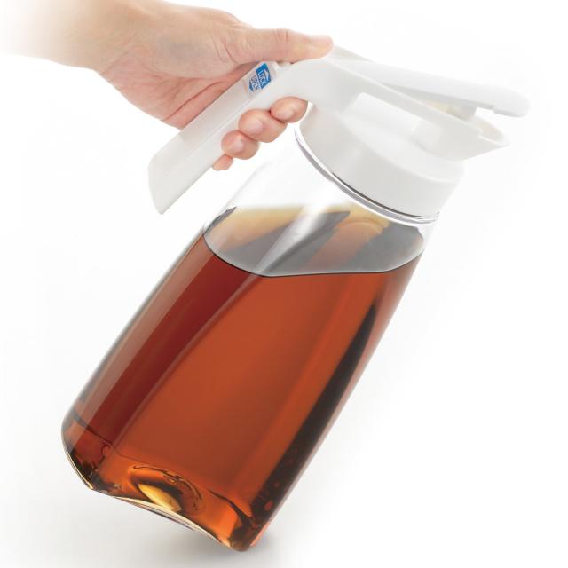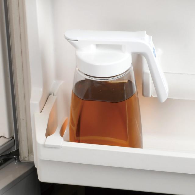 片手で簡単にロックを解除してワンタッチで注げる冷水ポット3Lです。持ちやすく注ぎやすいハンドル形状で、家族みんなが使いやすいデザインになっています。
