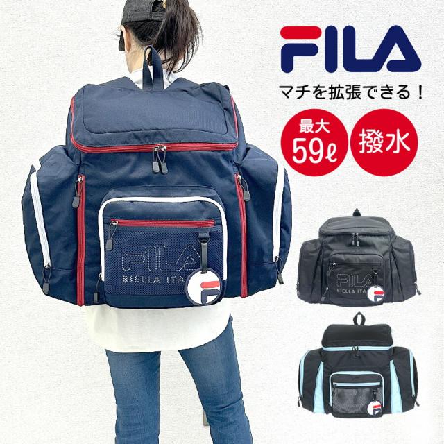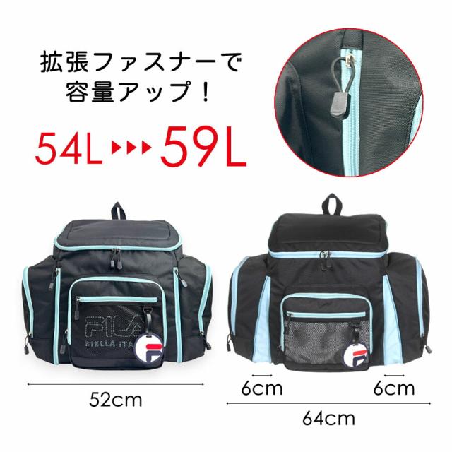 林間学校 リュック バッグ 女の子 小学生 大容量 7701 FILA フィラ ミオ サブリュック 54〜59L リュックサック 大型リュック 合宿 修学旅行 林間学校 2泊 3泊 アウトドア キャンプ ハイキング 登山 女子 人気 シンプル おしゃれ ブランド 小学校 高学年 黒 水色