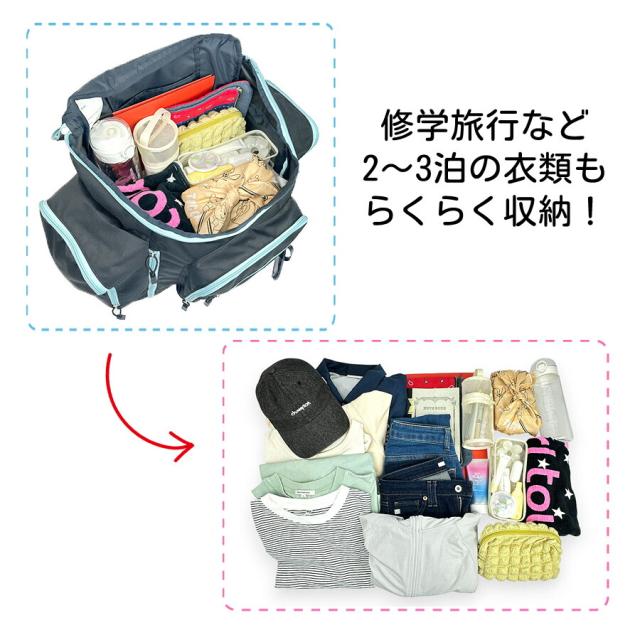 拡張ファスナーが付いているため、容量は54Lから最大59Lまで拡張可能で必要に応じて荷物の量を調整できます。