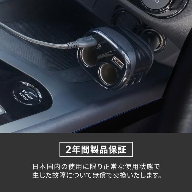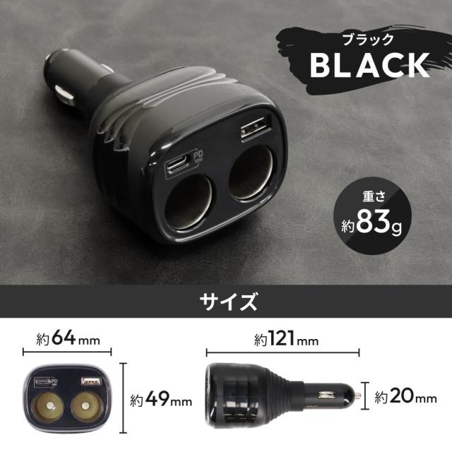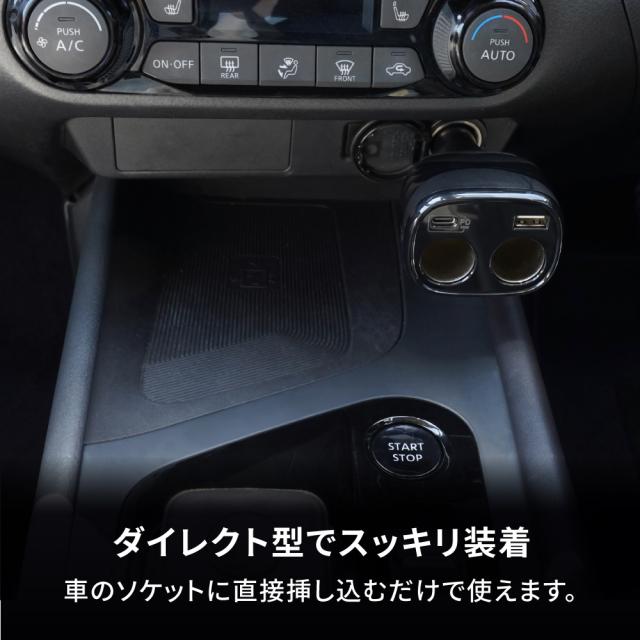 車載充電器 ダイレクト型 USB Type-C×1 USB Type-A×1 アクセサリーソケット×2 最大PD30W出力