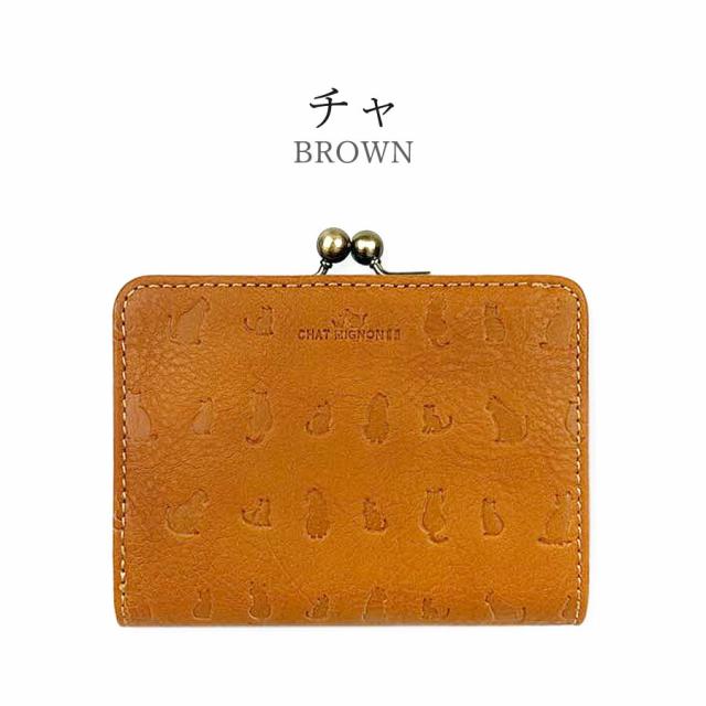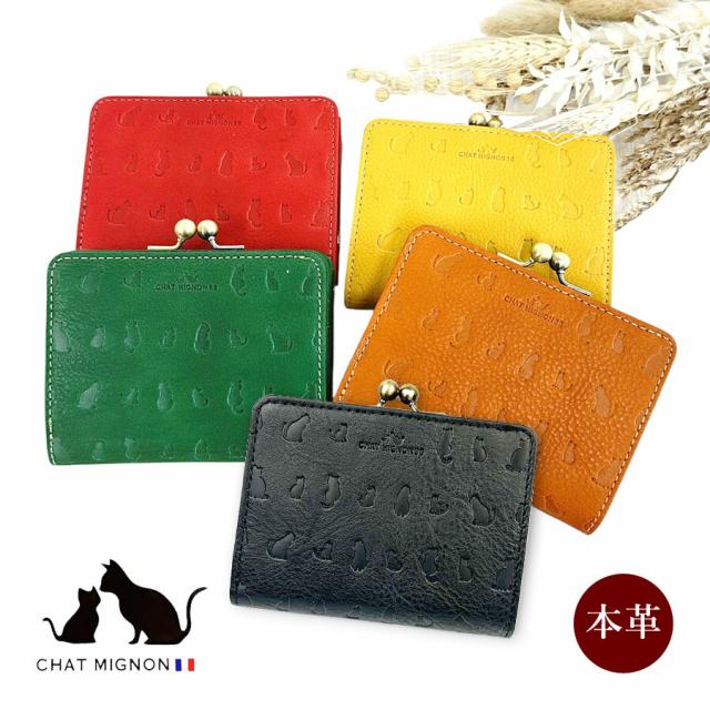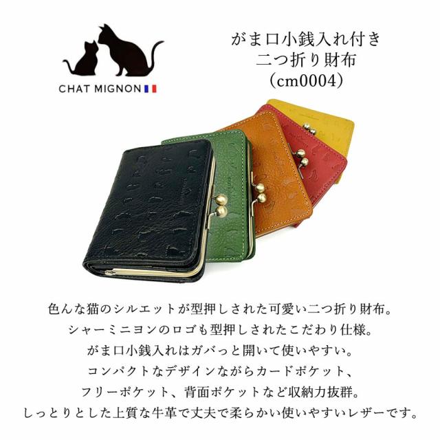 二つ折り財布 レディース がま口 ブランド cm0004 CHAT MIGINON シャーミニヨン リアルレザー がま口二つ折り財布 折り財布 ショートウォレット 牛革 本革 革財布 大容量 実用的 ねこちゃん にゃんこ 猫 おしゃれ 女性 ママ お母さん おばあちゃん プレゼント ギフト 贈り物