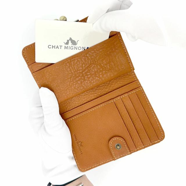■cm0004 CHAT MIGINON シャーミニヨン リアルレザー がま口二つ折り財布
