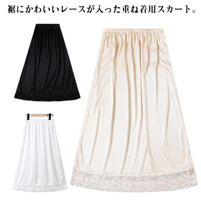 ペチスカート 透け防止 75cm 重ね着 スカラップ ペチコート ロング レディース 75cm スカート 透け対策 インナー ナチュラル 裾レース スカラップレース 下着 シンプル 春 夏