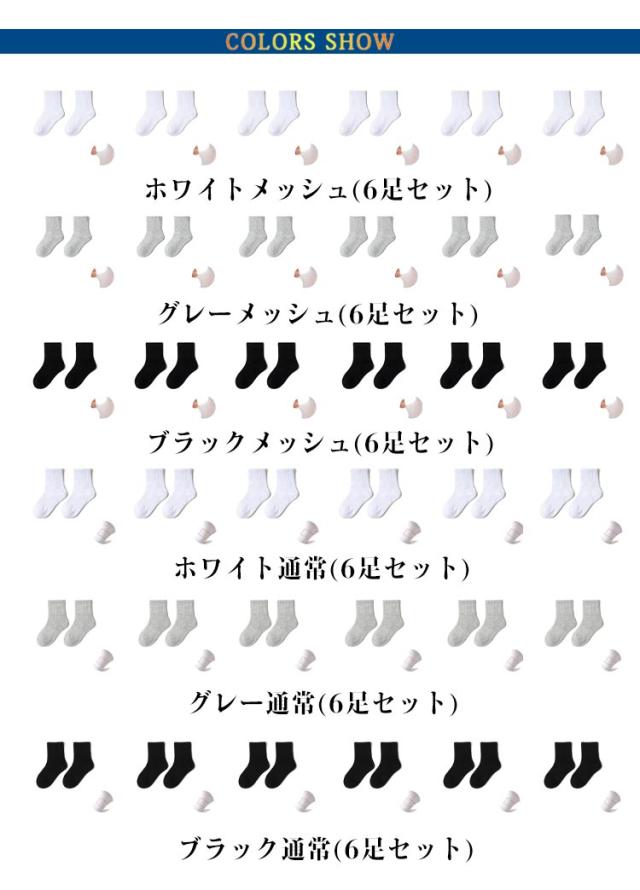 | 色 | ホワイトメッシュ(6足セット) グレーメッシュ(6足セット) ブラックメッシュ(6足セット) ホワイト通常(6足セット) グレー通常(6足セット) ブラック通常(6足セット) |