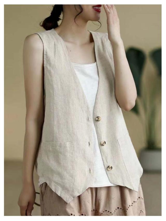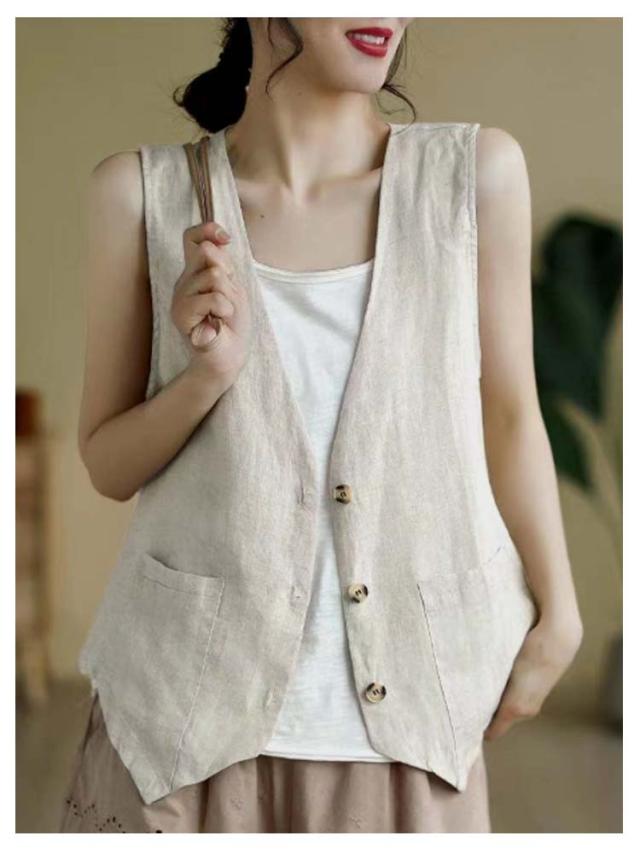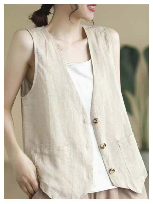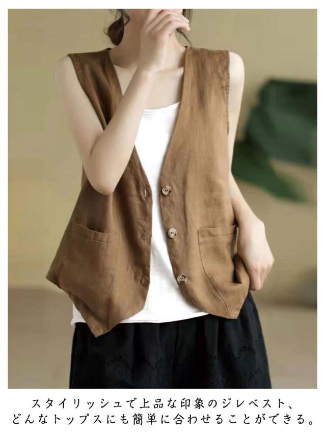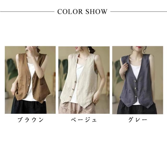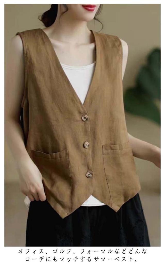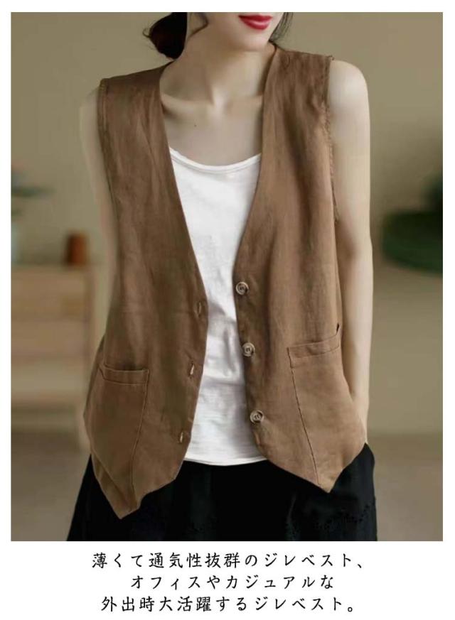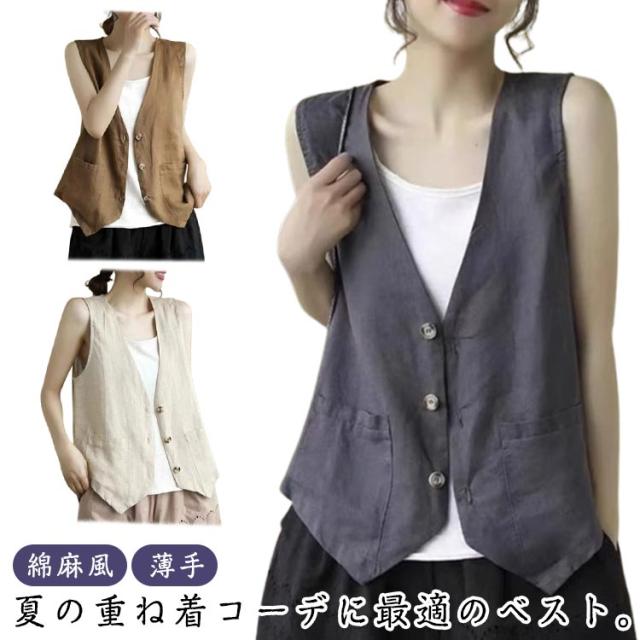 夏ベスト 夏ベスト サマーベスト レディース ベスト 涼しい 綿麻風 ジレ リネンベスト 無地 前開き トップス ノースリーブ ジャケット 春夏 薄い レディースベスト 40代 30代 50代