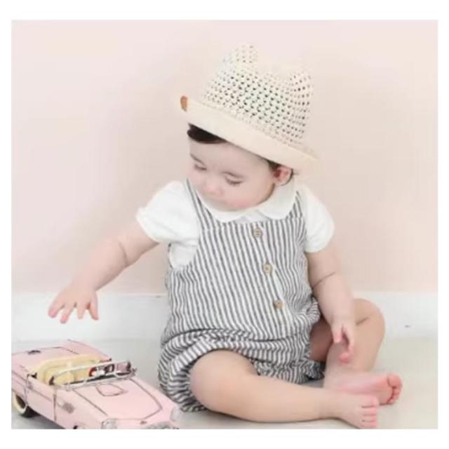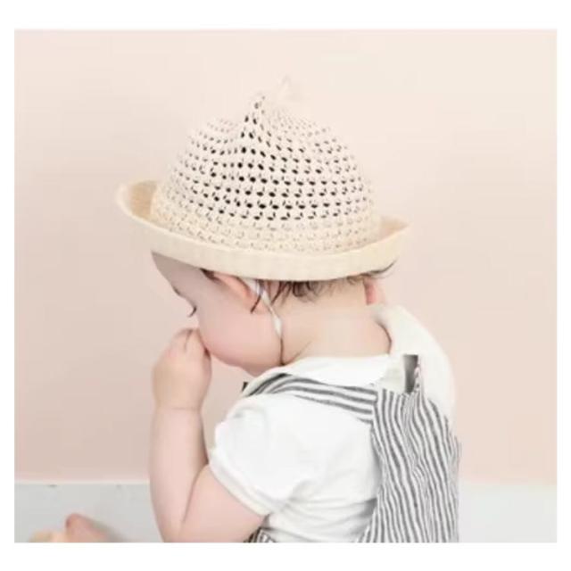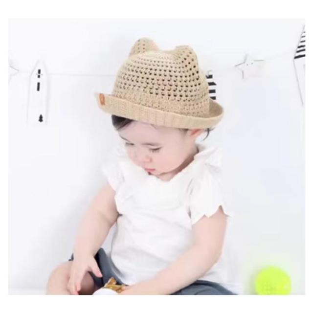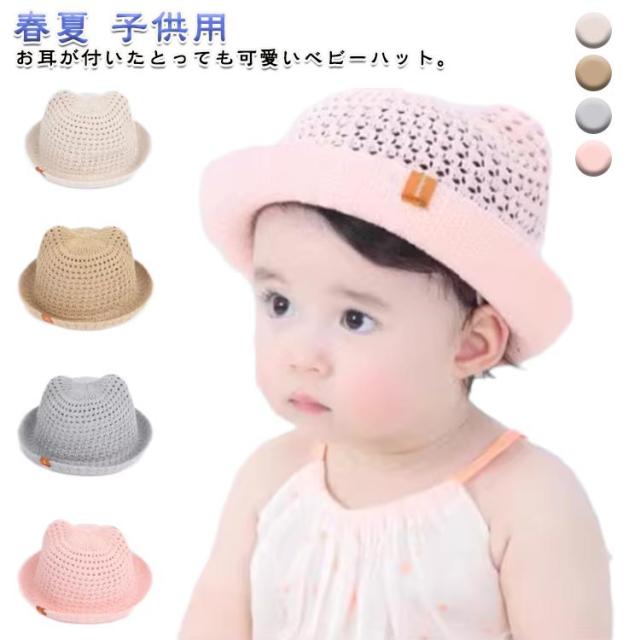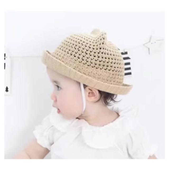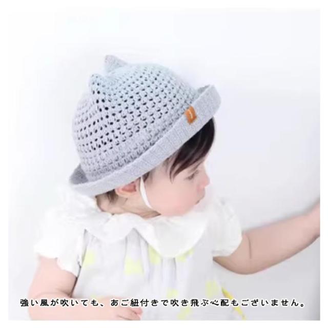 ベビー用 ハット あご紐 麦わら帽子 ベビー帽子 日除け UVカット 猫耳 男の子 可愛い 春夏 子供用 耳付き 赤ちゃん ベビー帽子 出産祝い プレゼント 涼しい 紫外線対策 お洒落 無地