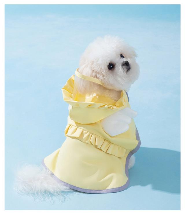 | 上品で可愛らしい服はいつも大人気! 着心地が良く、デザイン性、機能性を兼ねそろえたレインコートです! しっかりと雨から守りながらも、通気性が良いので快適にお散歩出来ます。 可愛いフードが付いた、ワンちゃん用のレインコートです。 | |