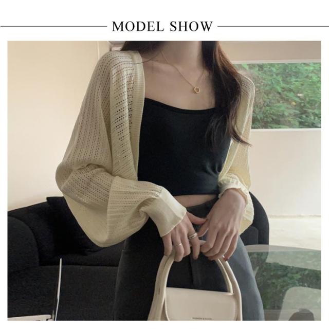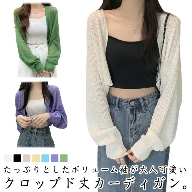 ボレロ風 カーディガン シースルー バルーンスリーブ サマーカーディガン 可愛い サマーニット 透け感 シアー カーディガン サマーカーディガン ショート丈 ニットカーディガン レイヤード
