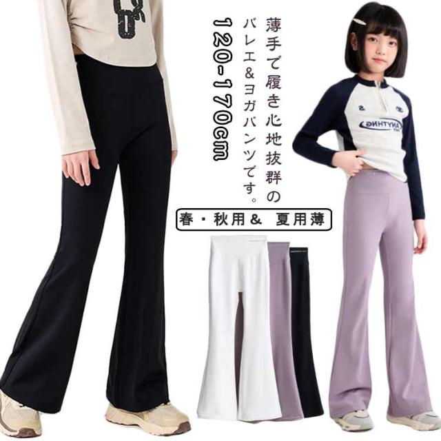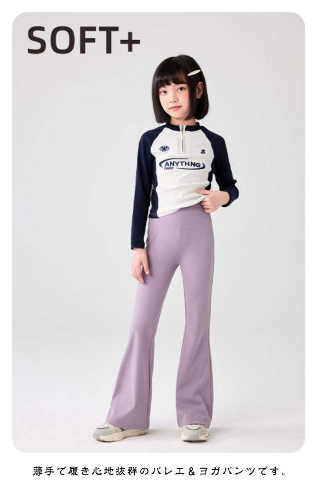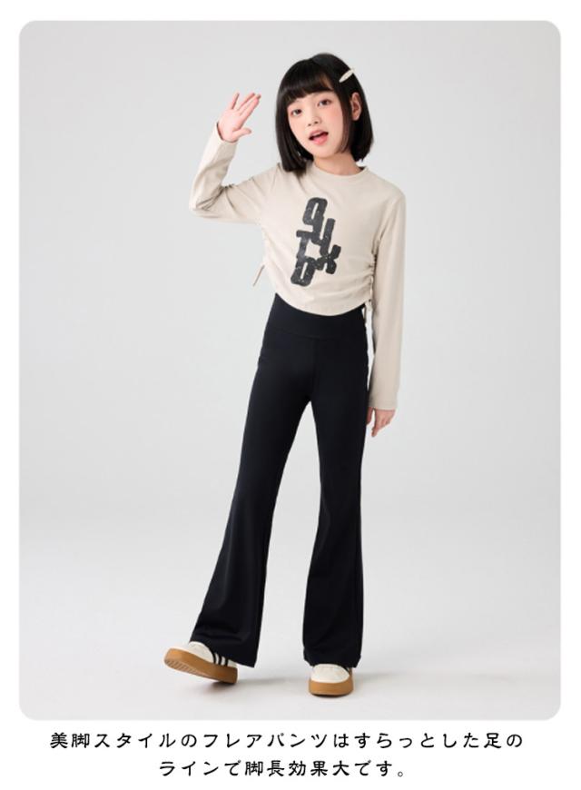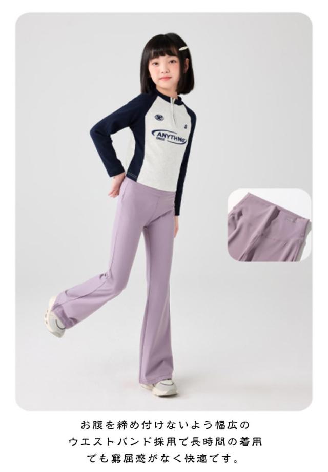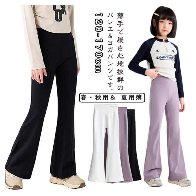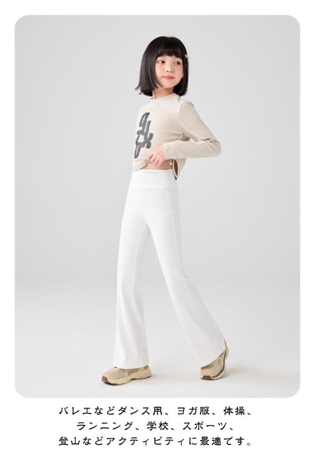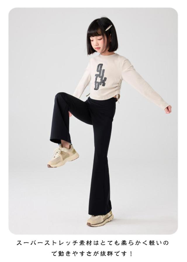 フレアパンツ フレアシルエット ジュニア キッズ服 バレエパンツ ダンス ヨガパンツ 長ズボン ハイウエスト 女の子 レギンス 130 美脚 子供服 ロングパンツ 伸縮性 120 ストレッチ 140 150 160 170