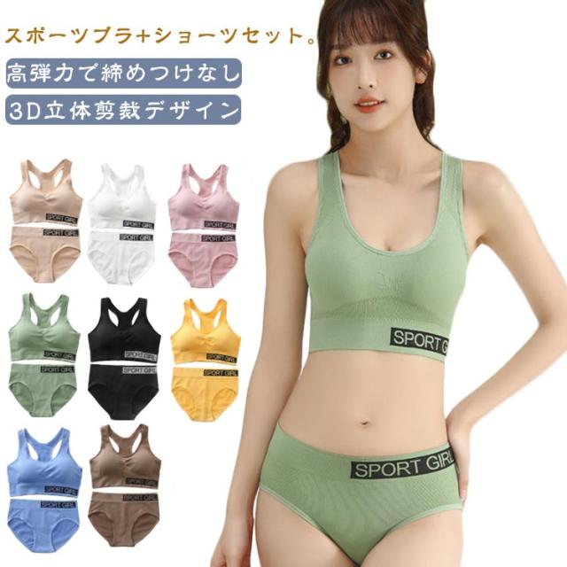 アンダーウェア 上下セット インナー 2点セット ショーツ パッド付き 運動 セット レディース 高校生 下着 スポーツブラ 中学生 スポーツブラ ノンワイヤー ナイトブラ カップ付き タンクトップ Y字 ブラセット ブラジャー スポーツウェア フィットネス ヨガ