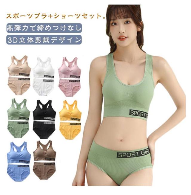 セット 2点セット 高校生 スポーツブラ 下着 パンツ スポーツブラ インナー ブラジャー カップ付き パッド付き アンダーウェア 中学生 ショーツ ノンワイヤー ナイトブラ レディース タンクトップ Y字 ブラセット 運動 スポーツウェア フィットネス ヨガ