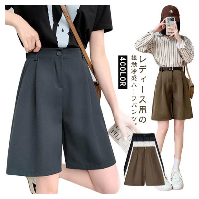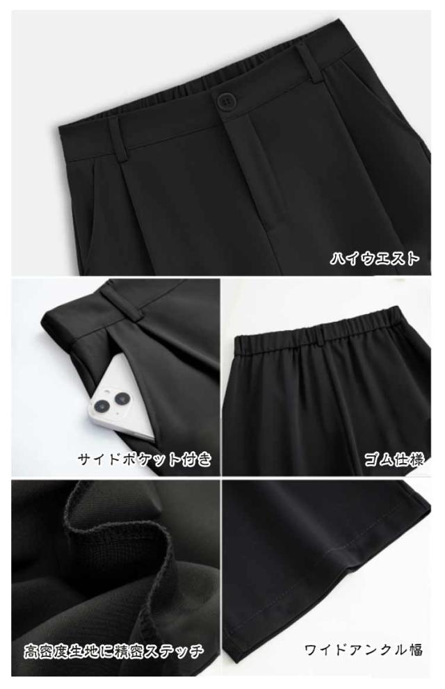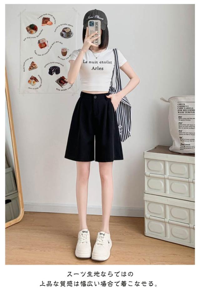 韓国ファッション ワイドショートパンツ 無地 スーツパンツ ワイドパンツ ポケット ゆったり ハイウエスト ハーフパンツ 夏用 レディース ハーフパンツ 5分丈パンツ キュロット 短パン 大きいサイズ ウエストゴム 半ズボン 着痩せ ショーパン 春夏
