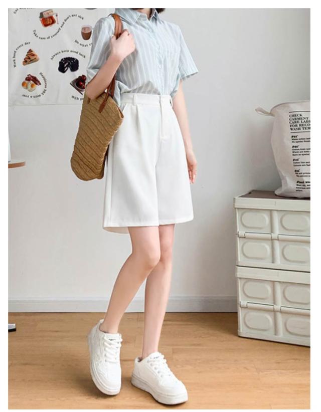 | レディース用の接触冷感ハーフパンツ。 通気性に優れた素材に五分丈の仕様で解放感たっぷりの履き心地! ゆったりとしたワイドパンツのシルエットで着痩せ効果も抜群! スーツ生地ならではの上品な質感は幅広い場合で着こなせる。 | |