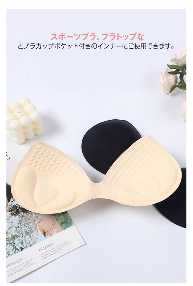 | 厚さ約4cmの激盛り!ふわふわのパットでキレイにバストアップ。 しっかりと下からバストを持ち上げ、自然で美しいバストラインを演出します。 セパレート型と一体型でズレにくいのもうれしい。 通気性のある素材なので、柔らかくて肌触りが良い。 スポーツブラ、ブラトップなどブラカップポケット付きのインナーにご使用できます。 厚みのあるパッドなのでサポート性やバストアップ効果もあり つけ心地も快適なブラパッドです。 | |