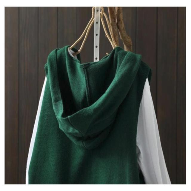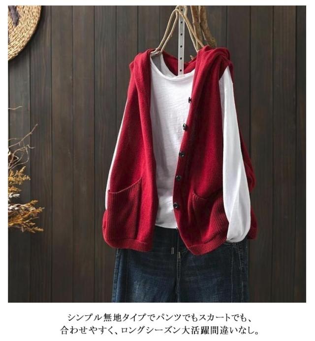 レディース レイヤード トップス カーディガン ノースリーブ ニットベスト フード付き パーカー 紺色 ポケット付き 前開き ゆったり おしゃれ 重ね着 ベスト ニットパーカー お洒落 可愛い 緑 ベージュ 黒 ニットベスト 春 秋 送料無料