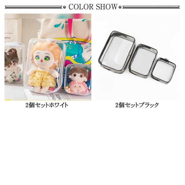 | 2個セット!ポンポンボールとキーホルダー付! ぬいぐるみバッグはPVC素材で作られており、丈夫で柔らかく、黄色になりにくく、耐久性があります。 バッグに人形を入れて、水やほこりから人形を保護することができます。 ぬいぐるみバッグは完全に透明なデザインで、人形をはっきりとディスプレイすることができ、外出用バッグとして理想的です。 キーホルダーとスポンジボールが付属しており、スポンジボールは人形を飾ることができ、人形をよりかわいく見せることができます、一緒に外出するためにあなたのバッグやバックパックに掛けることができ、また、私たちの服やバッグを飾ったり、一致させるための小さなアクセサリーとして使用することができます。 あらゆるぬいぐるみ、人形、バッジなどの収納に適しています。この透明なぬいぐるみポーチは、コミックに参加したり、外出したり、ショッピングしたり、旅行したりするのに適しています。 | |