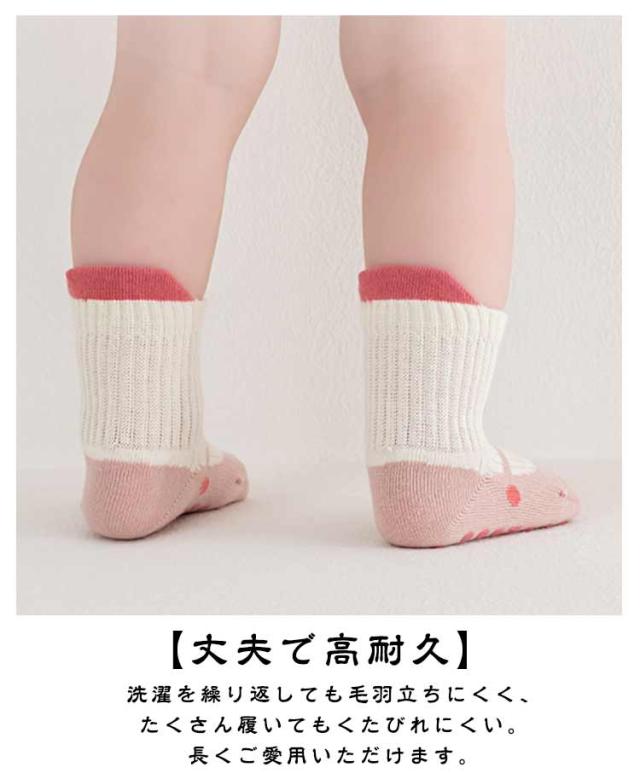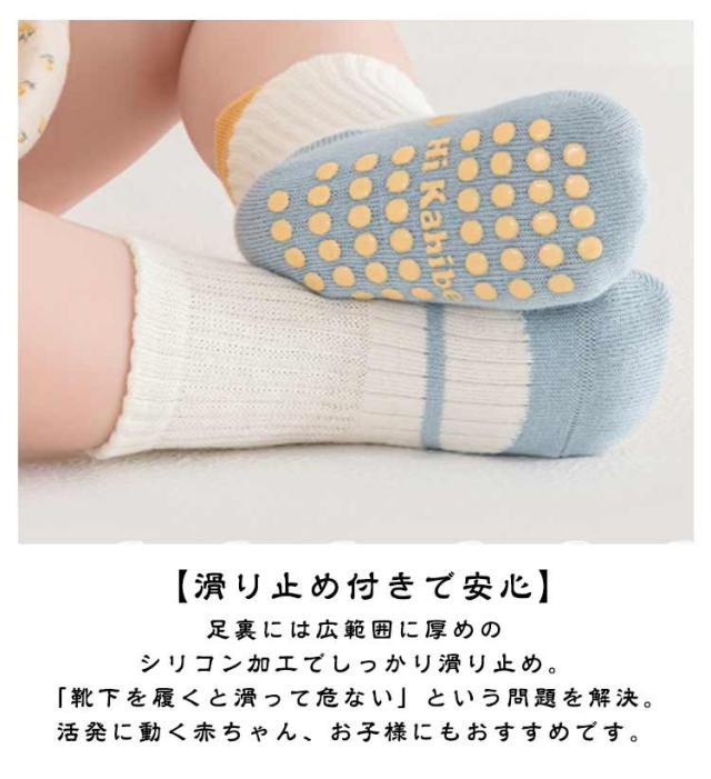 | 【足裏までかわいいベビーソックス】 おしゃれな色合いと可愛いイラストのベビーソックスです。 足裏の滑り止めのシリコンも可愛いイラストで、はいはいしている時に見える足裏までおしゃれ。 【滑り止め付きで安心】 足裏には広範囲に厚めのシリコン加工でしっかり滑り止め。 「靴下を履くと滑って危ない」という問題を解決。活発に動く赤ちゃん、お子様にもおすすめです。 【快適な履き心地】 開口部は収縮性の高い広めの縁取りで、足首を締め付けません。 足首には補強ゴム加工がありフィットしやすいつくりになっています。 また、つま先はチクチクしないよう縫い目があたりにくくなっています。 【丈夫で高耐久】 洗濯を繰り返しても毛羽立ちにくく、たくさん履いてもくたびれにくい。長くご愛用いただけます。 【うれしい5足セット】 どのセットも可愛い5足セット。 オールシーズンでお役立ちな靴下はちょっとした贈り物にもおすすめです。 ■可愛いソックス5足セット シンプル、柄物、いろいろなタイプを含めたセットで気分やお洋服に合わせて選べます。 洗い替えや予備の持ち歩き用にもぴったりです。 | |