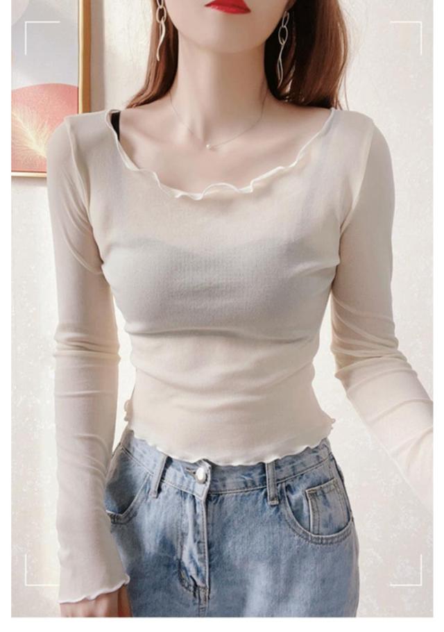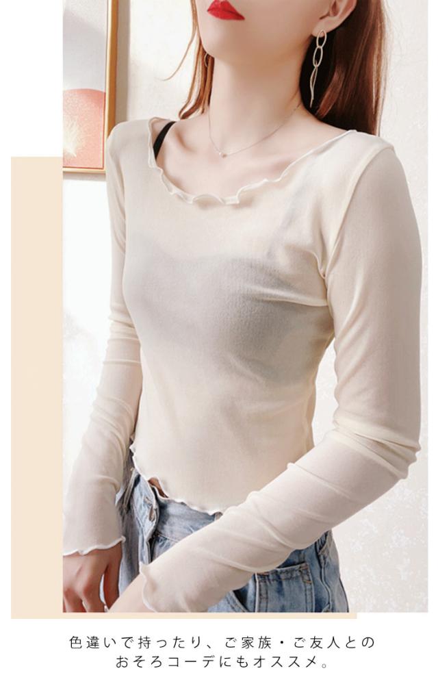 シアートップス 無地 春 ランドネック シアートップス インナー 透け感 長袖 トップス レディース シースルー 重ね着 UV対策 夏 トップス チュールレース レイヤード インナー 薄手 きれいめ シアー 無地 シンプル