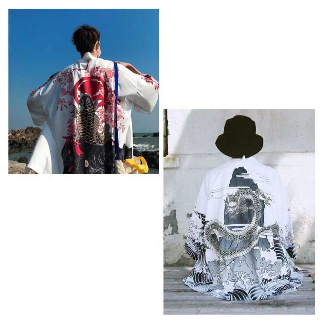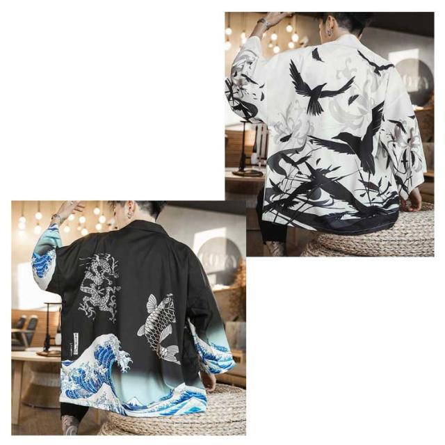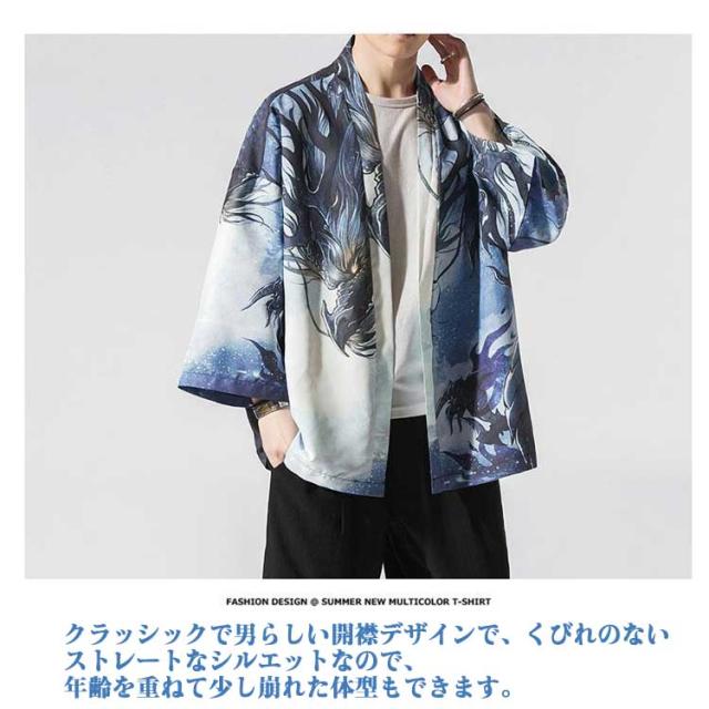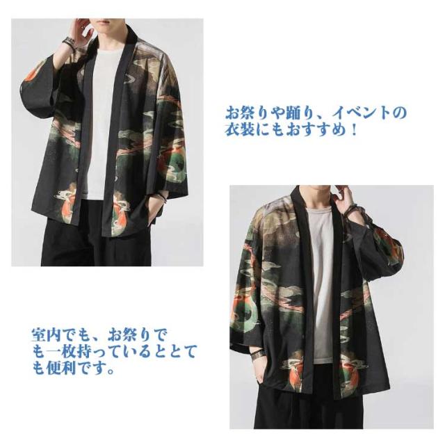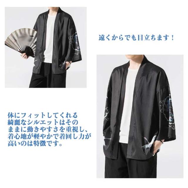 コスプレ 七分袖 甚平 ジャケット ビジカジ 浴衣 UVカット 着物風 カジュアル 着物 カーディガン カーデ ポンチョ ゆったり ダンス リモートワーク トップス ダンス コスプレ ゆかた 羽織 甚平 和装 和服 普段着 春服 夏物