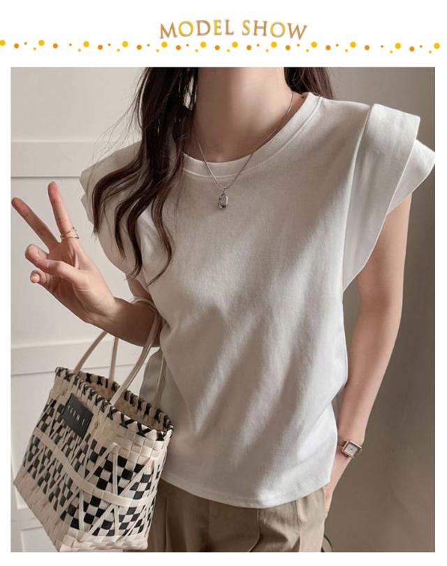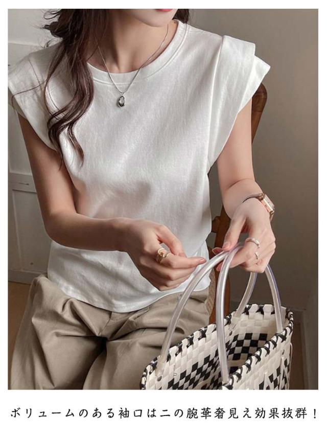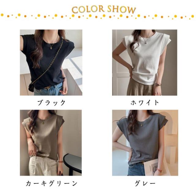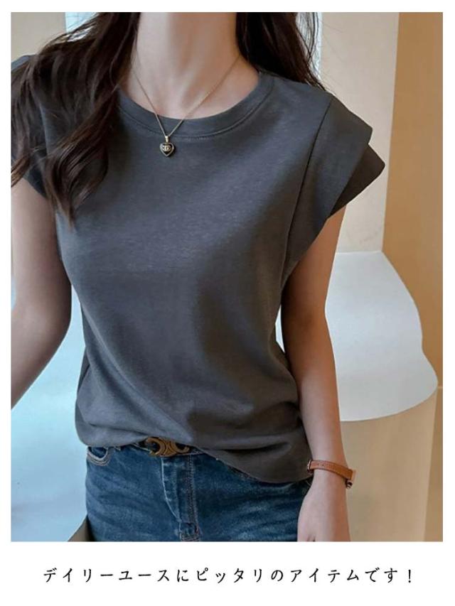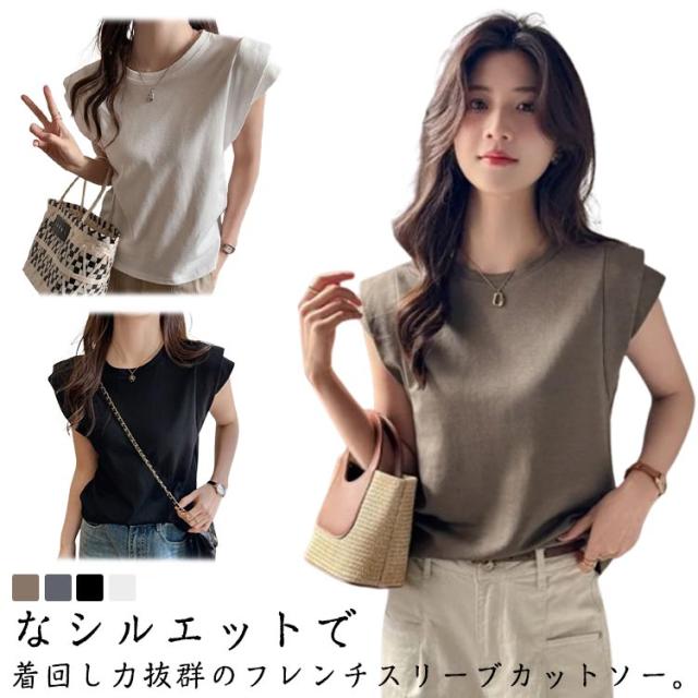 春夏 フレンチスリーブ 二の腕カバー レディース フレンチ クルーネック tシャツ カットソー フレンチスリーブ 半袖 半袖tシャツ 重ね着風 二の腕隠し トップス プルオーバー 大きいサイズ 体型カバー 無地 フレンチ カジュアル