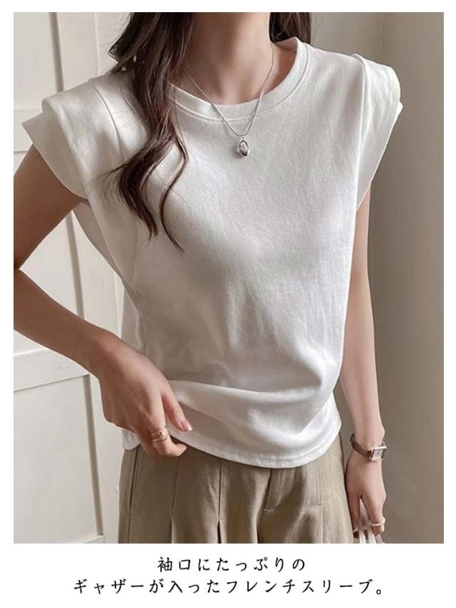 | なシルエットで着回し力抜群のフレンチスリーブカットソー。 袖口にたっぷりのギャザーが入ったフレンチスリーブ。 ボリュームのある袖口は二の腕華奢見え効果抜群! インナーが見えにく脇目隠し設計なのが嬉しいポイント◎ かわいいゆとり感を溢れるTシャツで、カジュアルなデザインが女子感満々♪ デイリーユースにピッタリのアイテムです! | |