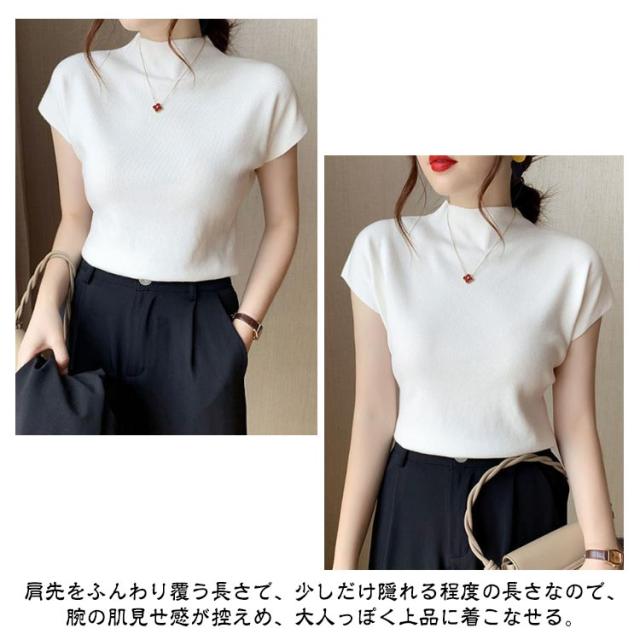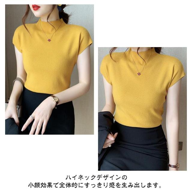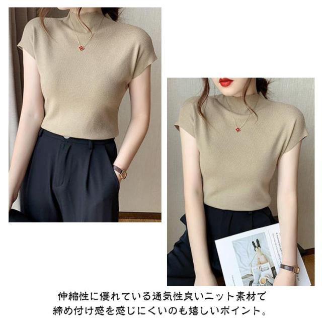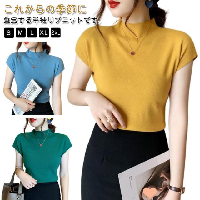 トップス セーター フレンチスリーブ 半袖 ニット サマーニット タートルネック レディース 春夏 薄手 ニット リブニット 無地 着痩せ 伸縮性 カジュアル きれいめ お洒落 上品 通勤 オフィス