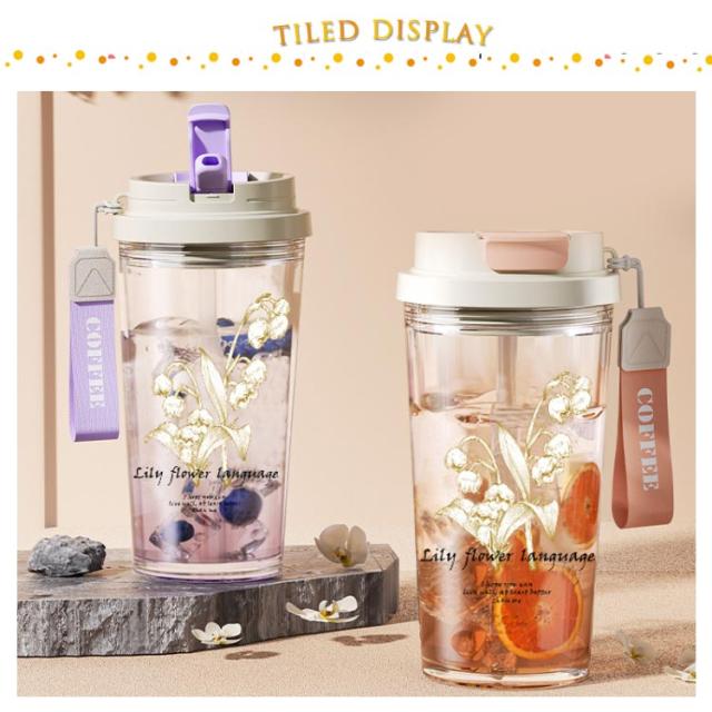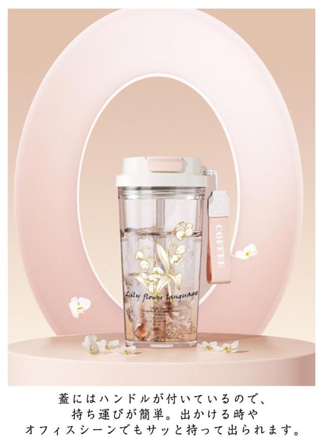 花柄 ストロー付き水筒 大容量 580ml マイボトル ストロー付き 大容量 プレゼント ウォーターボトル クリアボトル ストロー付き水筒 直飲み マグボトル おしゃれ 持ち運び ギフト ボトル ペア おそろい パープル ピック