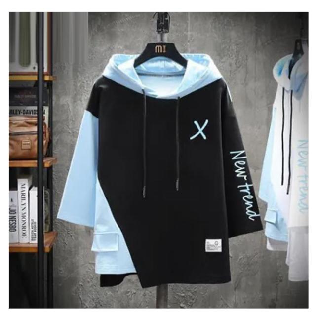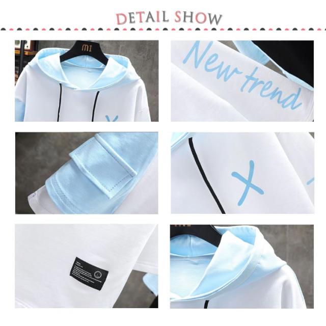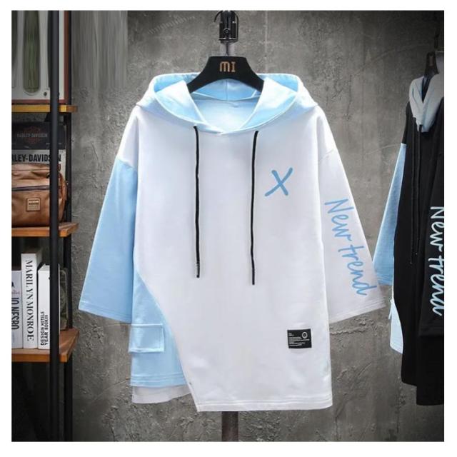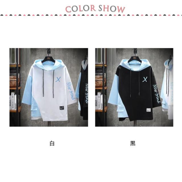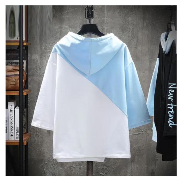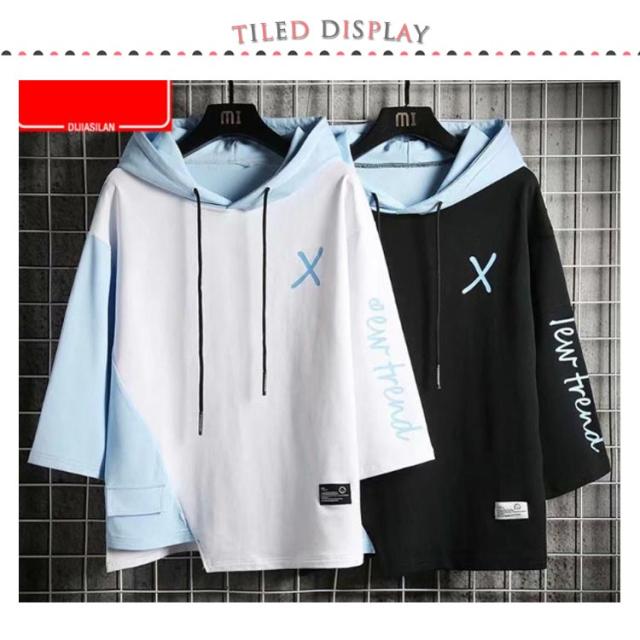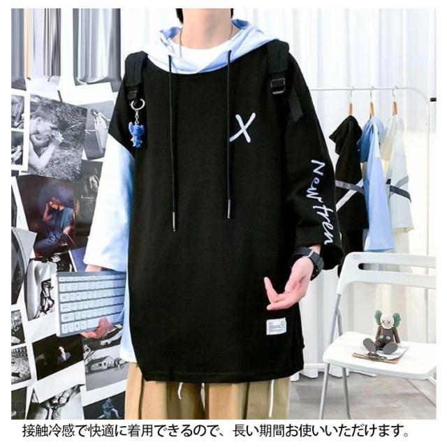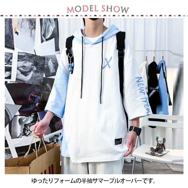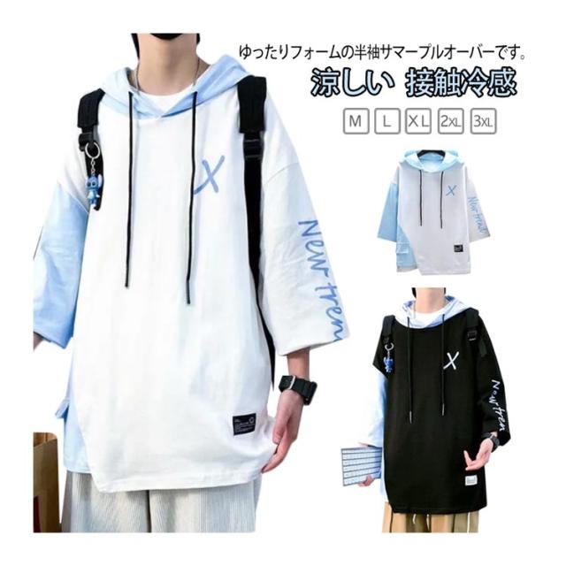夏 冷感 フード付きtシャツ 切り替え 七分袖 薄手 半袖 パーカー Tシャツ メンズ 夏服 Tシャツ おしゃれ 夏服 涼しい DRY 接触冷感 吸汗速乾 大きいサイズ レイヤード風 ゆったり プルオーバーパーカー ゆったり カジュアル プルオーバー