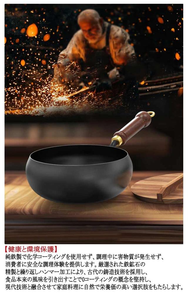 | 省エネ ガス代節約!鉄製中華鍋(蓋付き!) 【健康と環境保護】鉄製で化学コーティングを使用していないため、調理中に害物質が発生せず、消費者にで安全な調理体験をします。繰り返しハンマー加工。現代技術を融合させ 家庭料理により自然で栄養価の高い選択肢をもたらします。 【優れた耐久性】絶妙な鉄素材は、耐摩耗性に優れているだけでなく、調理にも耐え、耐用年数が長い。丸い構造設計は効果的に熱を伝達し、調理効率を高めることができる。木製のハンドルの抗焦げ設計により 安全で便利な調理体験をもたらします。 【多機能クッキング】1日3食の様々な調理ニーズに簡単に対応できる。よく設計された内部構造は食材の置き場所や取り出しが簡単で、スープ、炒め物、煮込み料理など、調理性能を発揮します。 【スタイリッシュ】シンプルで雰囲気のある外観デインは。絶妙な木製ハンドルは耐熱性と実用性だけでなく、全体的な鍋やフライパンに古典的な風味を添え、キッチン空間にエレな気質を加えます。 | |