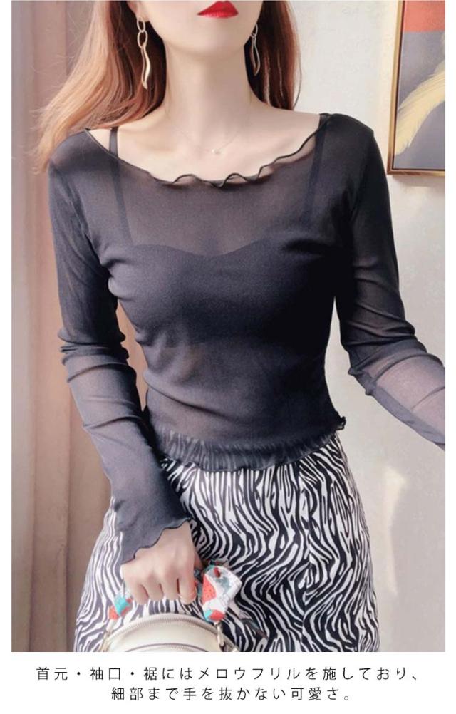 レディース シースルー トップス 透け感 インナー シアートップス ランドネック シアートップス 重ね着 春 夏 無地 UV対策 シースルー トップス チュールレース レイヤード インナー 薄手 きれいめ シアー 無地 シンプル
