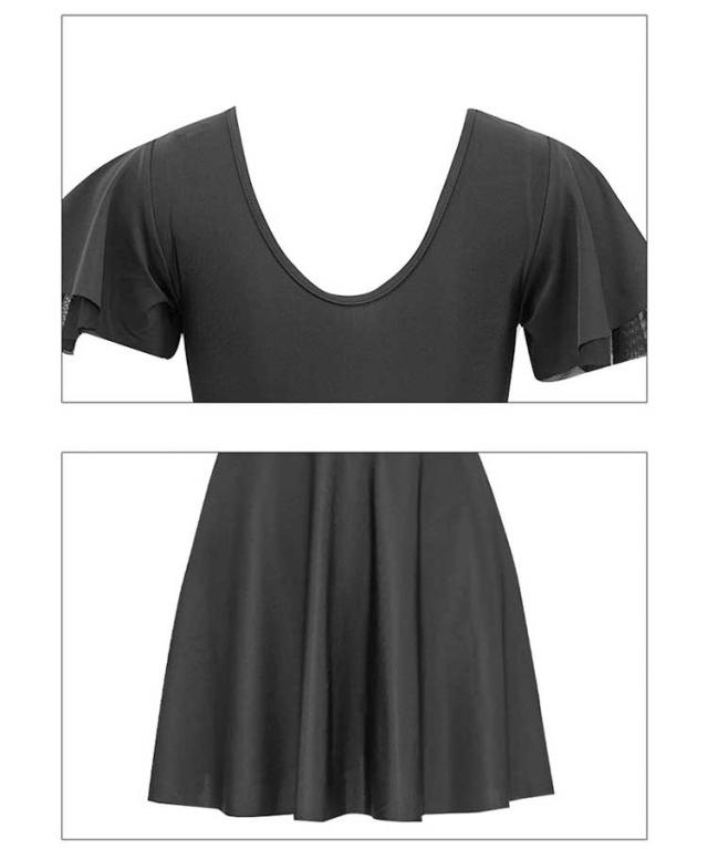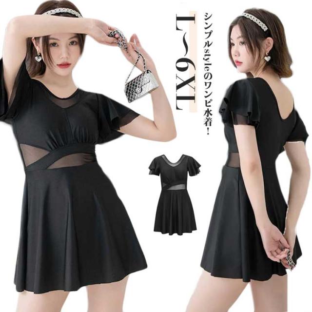ママ水着 ミセス 体型カバー水着 20代 レディース 透け感 ワンピース水着 フリル袖 無地 40代 オールインワン 大きいサイズ 50代 ワンピース水着 かわいい 半袖 スイムウエア おしゃれ カップ付き インナーパンツ付き フレアスカート