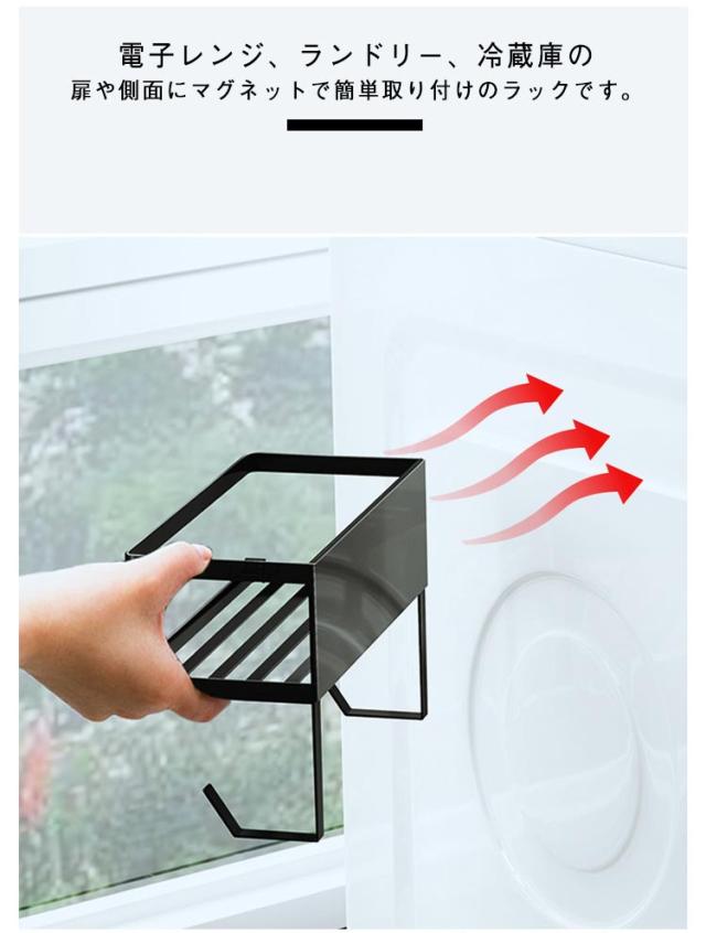 | 強力マグネットで洗濯機の側面に簡単取り付け。 置き場所に困る給水ホースや洗濯用洗剤、洗濯用ハンガー、小物などを洗濯機の側面に一括収納。 底面の接地面が少なく、通気性がいいデザインなので、ぬめりにくくお手入れも簡単です。 電子レンジ、ランドリー、冷蔵庫の扉や側面にマグネットで簡単取り付けのラックです。 | |