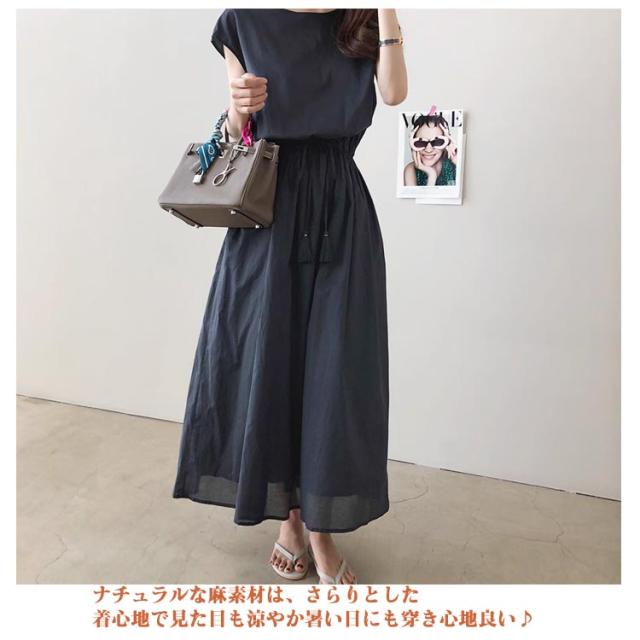 ロングワンピース ワンピース 綿麻ワンピース マキシ ロングワンピ マキシワンピ マキシワンピース レディース 夏服 ワンピース 半袖 ワンピ ロング丈 体型カバー 無地 シンプル ナチュラル 綿麻 薄手 体型カバー