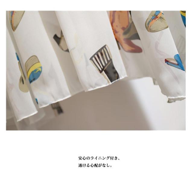 | ふんわりとしたシフォン生地でガーリーエレガントなスカート 安心のライニング付き、透ける心配がなし。 お気に入りの柄が見つかればシンプルトップスと組み合わせてコーデ完成! 共生地のシフォンベルトはスカーフやバッグに着けてもかわいいです。 | |