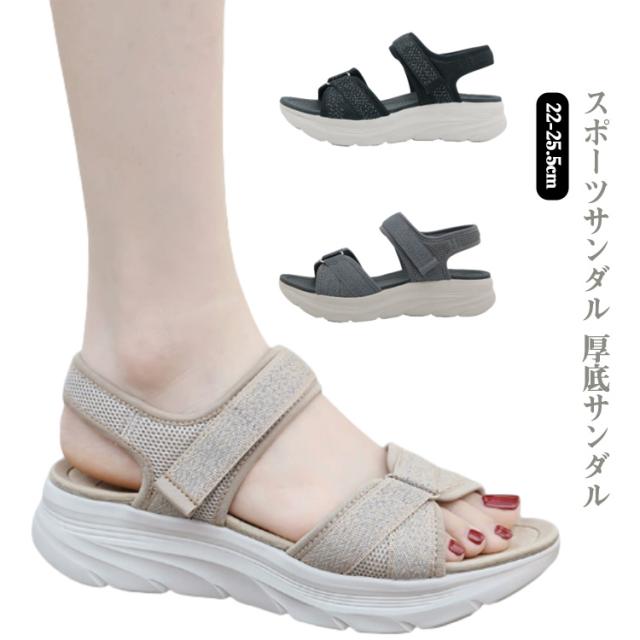 ウェッジソール 厚底サンダル 5センチヒール スポーツサンダル クロスベルト 厚底 レディース サンダル プラットフォーム きれいめ メッシュ 通気性 軽量 カジュアル 歩きやすい 疲れない コンフォート 春 夏 脚長 美脚