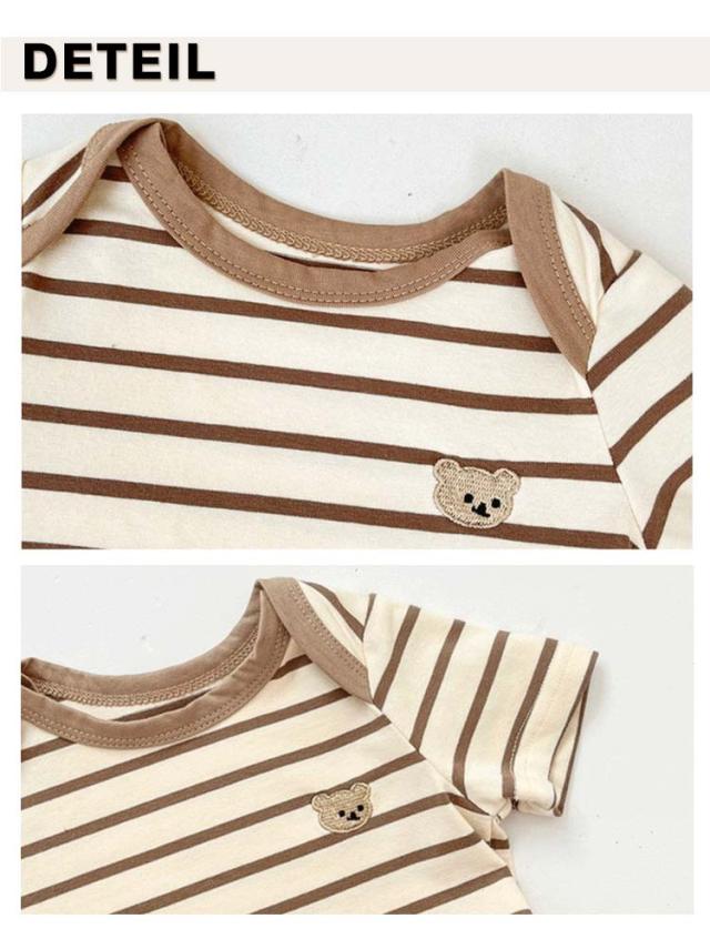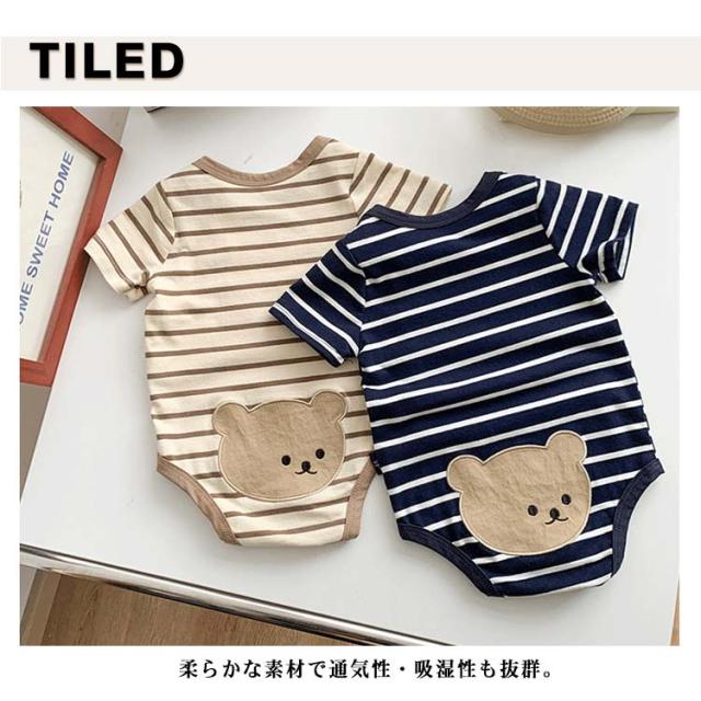 ボーダー おしゃれ ベビー 半袖ロンパース 半袖 男の子 子供服 ベビー服 新生児 股ボタン かわいい ロンパース くまさん 赤ちゃん 七五三 夏 カバーオール 女の子 普段着 肌着 出産祝い 退院着 ボーダーロンパース カジュアル 66 73 80