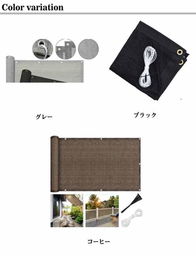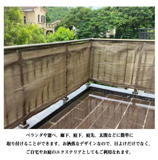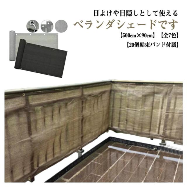 | 日よけや目隠しとして使えるベランダシェードです。【500cm×90cm】【全7色】【20個結束バンド付属】 外から入りこんでくる直射日光をやさしく和らげ、室内の温度上昇を緩和し、節電効果も期待できます。 水洗いが可能なので汚れた場合も安心です。 四辺にハトメが付いており、自由に縦横にご利用できます。ハトメ間隔約50CM、しっかりと取り付けることができます。 サンシェードは高密度ポリエチレン生地を使用し、紫外線UVカット率は約90%-95%です。遮光率は約85%。紫外線をカットすると同時に熱気を逃し、シェード下の空間がより快適になるよう工夫されています。 ベランダや窓ペ、廊下、庭下、庭先、玄関などに簡単に取り付けることができます。お洒落なデザインなので、日よけだけでなく、ご自宅やお庭のエクステリアとしてもご利用なれます。 | |