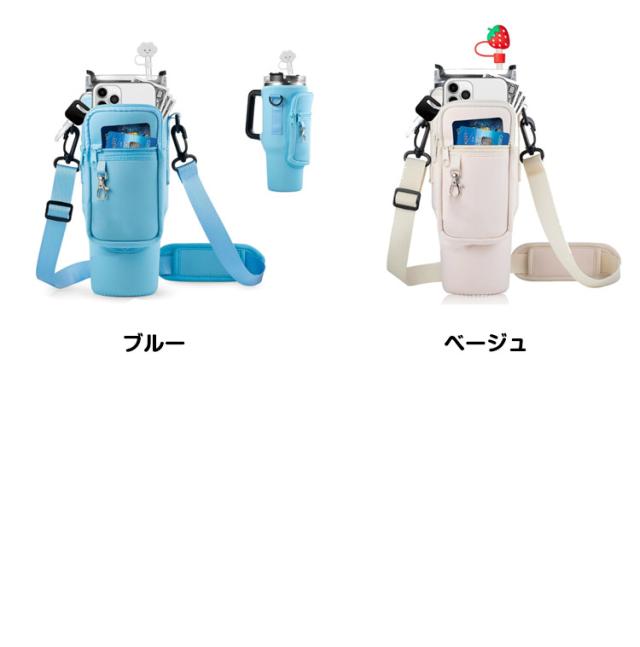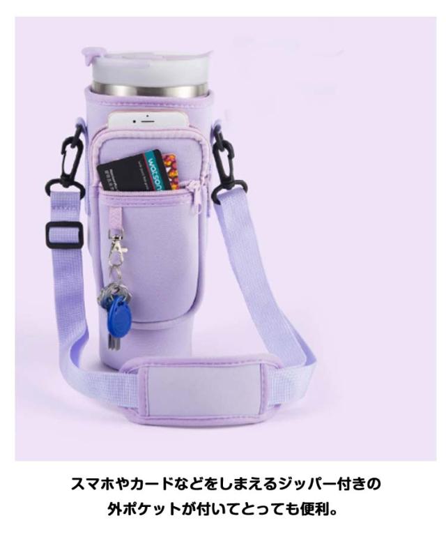 ハイキング 水筒カバー ポケット付き ペットボトルケース スタンレー用 スタンレー用カップホルダー 斜めかけ カード収納 ショルダーストラップ付き 水筒ケース 肩掛け スポーツボトル 魔法瓶用 子供 大人 アウトドア スタンレー用カップホルダー ウォーキング 旅行